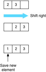 Adding new elements to the middle of a list works largely the same way as adding a new element to the head of the list. If you call the Array#insert method, Ruby first needs to move the remaining elements to the right to make space for the new value.
