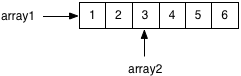 As a matter of fact, it turns out that Ruby does exactly that! Using a series of tricks known as “copy on write optimization,” Ruby shares values across different arrays! Ruby does this by maintaining a single copy of the larger array with all the data values, and creating the second array using a simple pointer or reference to the middle of larger array as shown above.