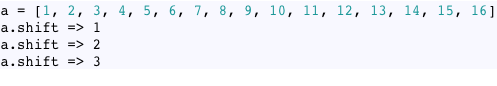 As I explained above, theoretically Ruby needs to shift or copy all of the existing elements over to the left whenever you remove an element from the head of a list. For a small array like this one that won’t matter. But if the array contained 1000s of elements, it’s possible this could be a slow operation.