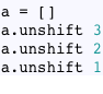 This means that using unshift means you pay a performance penalty every time you add a new element to the head of a list. As you might guess, adding elements to the end of the list is cheaper, since no shifting is necessary – a better way to create a list in Ruby would be to use the push or << method instead: