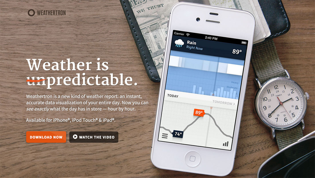 Weathertron’s headline gets across the idea of its app in a clever way, without compromising clarity.