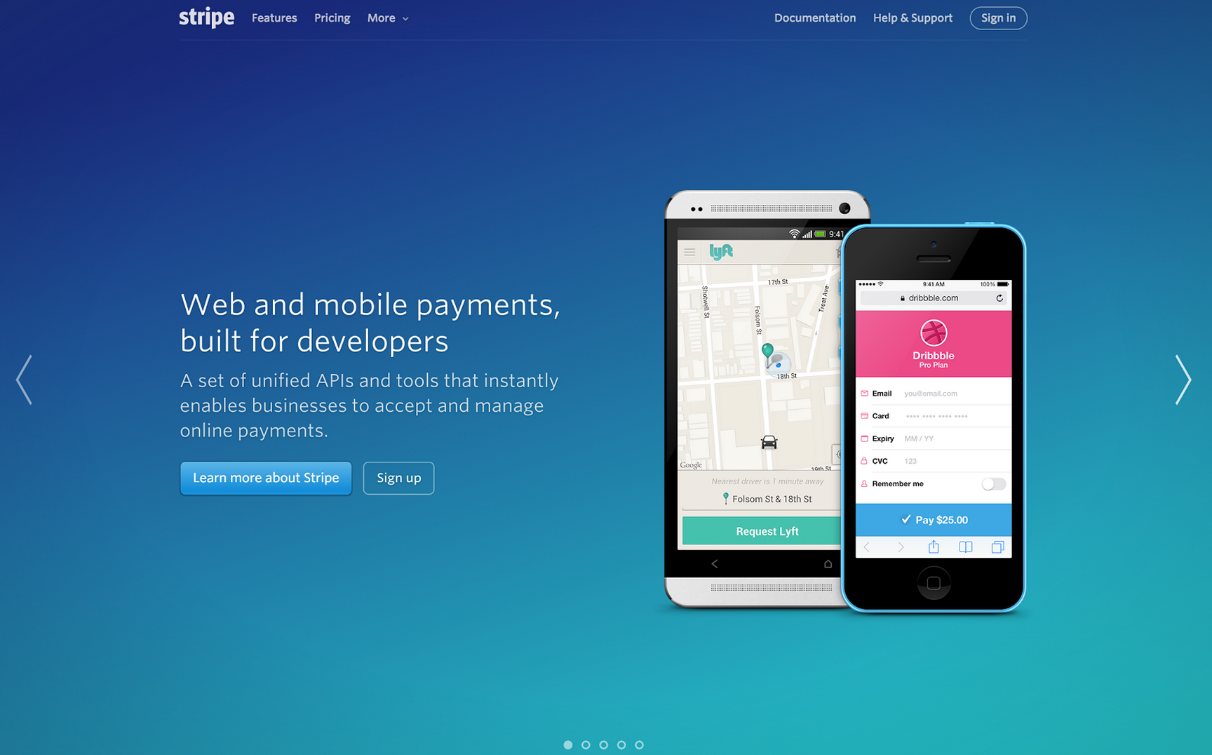 Stripe’s website is clear and targeted so you’re left without a doubt about what it offers and who it is for. Not only have they shown screenshots of what their product does, they’ve also sneaked in a bit of social proof by using examples of brands using their system.