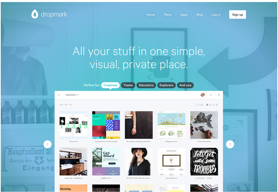 Dropmark’s website does a good job of targeting multiple audiences. By showing an example of how it can work with each group you eliminate the issue of creating for many and at the same time creating for none.