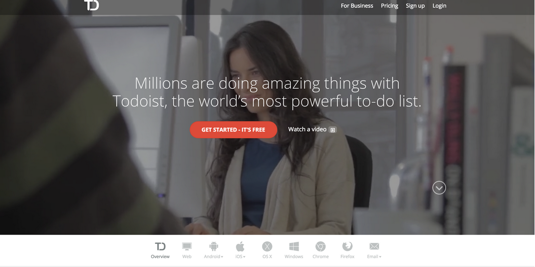 A to-do list app is going to be particularly hard to sell as there are so many of them. Todoist’s headline instantly sets it as a cut above the rest. Including the supported browsers and devices is a great way to differentiate themselves from all the “iPhone only—Android coming soon” apps out there.