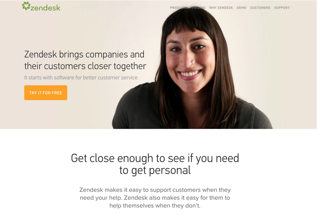 Zendesk’s entire website is meticulously thought through. There’s no long stretches of text that nobody is going to read. Every point is laid out in a clear and concise way. You’ll also notice the only time they use orange is when asking you to sign up.
